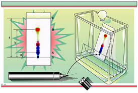 | ค่า Rf = ระยะทางที่สารเคลื่อนที่ / ระยะทางที่ตัวทำละลายเคลื่อนที่ |